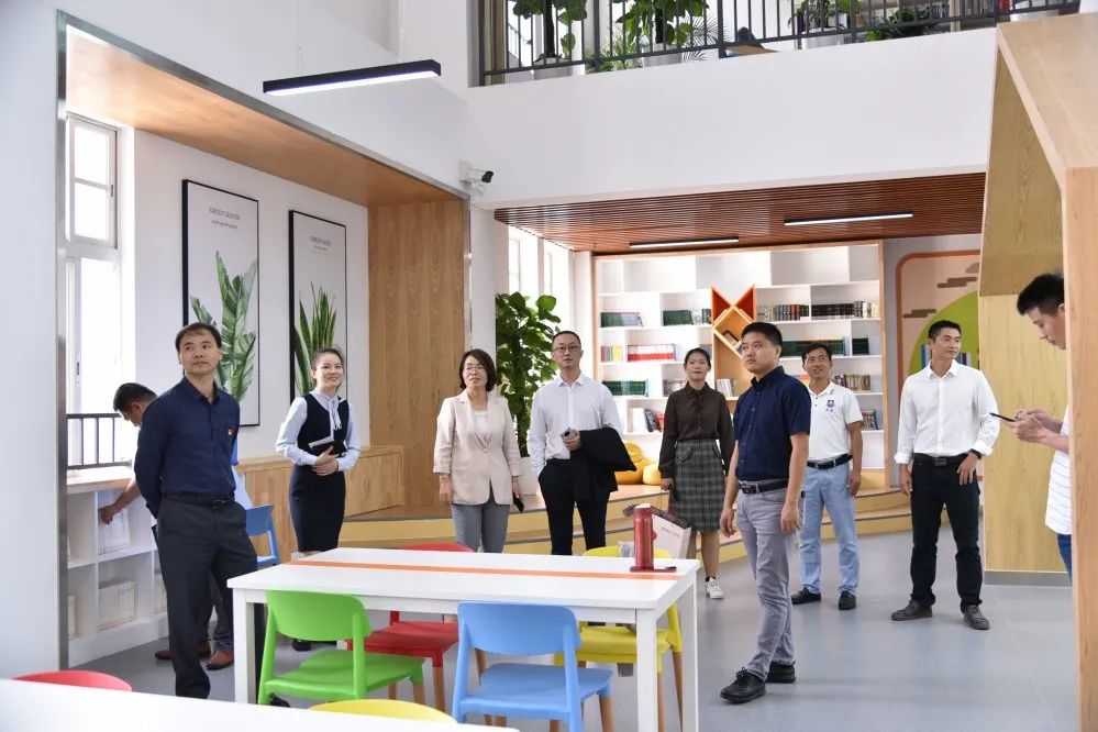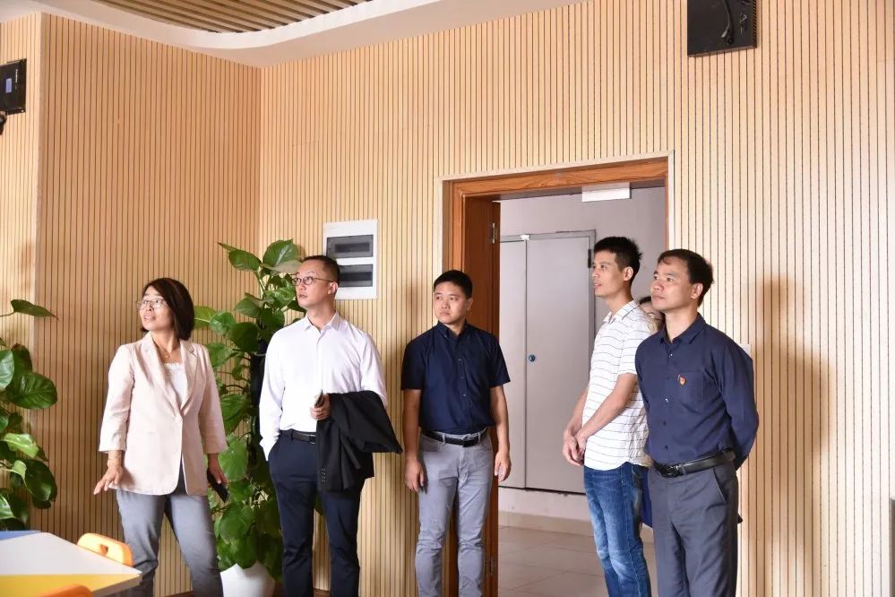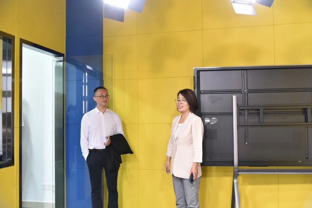訪問團(tuán)一行到達(dá)目的地后,便在南沙區(qū)教育局教育管理科科長(zhǎng)王敏、廣州外國(guó)語(yǔ)學(xué)校附屬學(xué)校校長(zhǎng)劉梅、黨支部書記潘小斌、副校長(zhǎng)嚴(yán)明堂、王春強(qiáng)等的陪同下,先后參觀了學(xué)校的宿舍、飯?zhí)?、物理?shí)驗(yàn)室、外語(yǔ)情景室、圖書館、校園電視臺(tái)等場(chǎng)室。