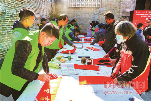 當(dāng)天一大早,羊額月池何公祠就聚集了一批書法名家,即席揮毫為市民免費寫春聯(lián)。據(jù)悉,倫教組織書法名家為市民免費寫春聯(lián)活動已經(jīng)延續(xù)多年,深受市民歡迎。今年活動繼續(xù)開展,1月2日至2月10日期間,倫教藝術(shù)文化協(xié)會、倫教街道書畫協(xié)會的一眾書法家(文化志愿者)將到各村居開展義務(wù)為民寫春聯(lián)送福活動。