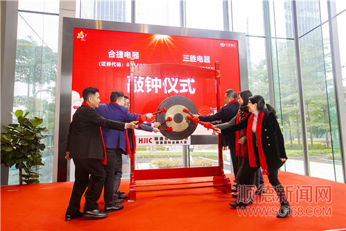 珠江商報(bào)訊 記者趙鵬報(bào)道:昨日上午,2020年順德區(qū)新三板企業(yè)掛牌儀式暨財(cái)務(wù)顧問沙龍?jiān)诠鹋虾.a(chǎn)融生態(tài)小鎮(zhèn)的眾創(chuàng)金融街舉辦。領(lǐng)導(dǎo)嘉賓共同見證廣東三勝電器股份有限公司、廣東合捷電器股份有限公司兩家新三板掛牌公司敲鐘儀式。