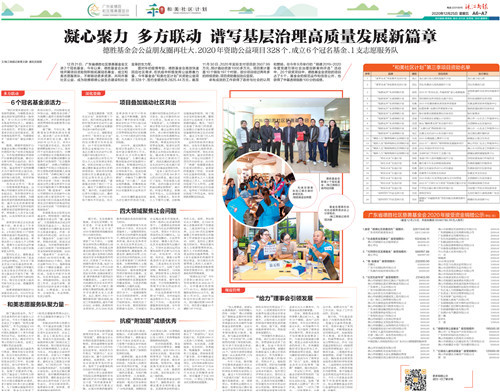 “和美社區(qū)計劃”今年共資助公益項目328個,簽約金額合共2825.44萬元,其中慈善信托資助2771.30萬元,其他社會捐贈資金資助54.14萬元。截至11月30日,2020年實際支付項目款2607.99萬元,預(yù)計撬動資源1000多萬元。項目累計覆蓋10個鎮(zhèn)街197個村居。