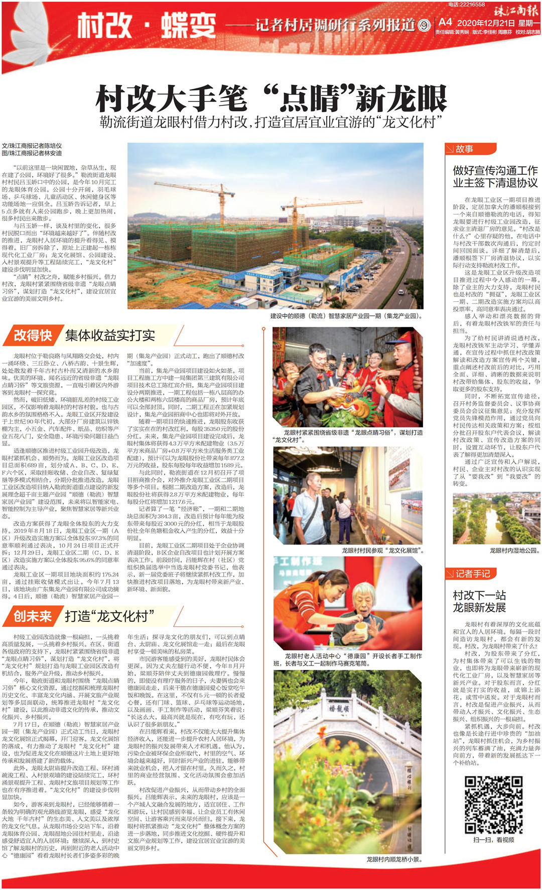 村改促進(jìn)產(chǎn)業(yè)振興,從而帶動鄉(xiāng)村的全面振興。呂能輝表示,未來的龍眼村,應(yīng)該是一個(gè)產(chǎn)城人文融合發(fā)展的地方,適宜居住、工作和游玩,讓村民感到幸福、讓企業(yè)員工有休閑空間、讓游客乘興而來盡興而歸。接下來,龍眼村將抓緊推動“龍文化村”整體概念方案的進(jìn)一步落地,同步推進(jìn)文化挖掘、硬件提升和文旅產(chǎn)業(yè)規(guī)劃等工作,建設(shè)宜居宜業(yè)宜游的美麗文明鄉(xiāng)村。