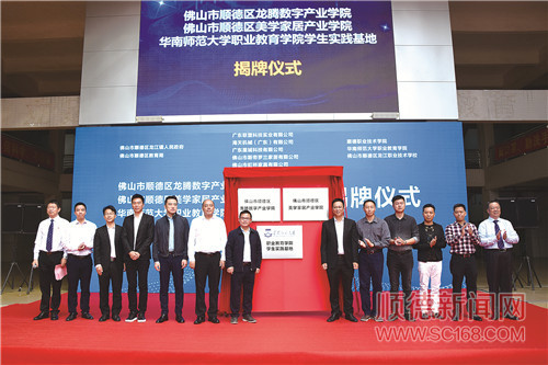 11月24日上午,順德區(qū)龍騰數(shù)字產(chǎn)業(yè)學(xué)院、順德區(qū)美學(xué)家居產(chǎn)業(yè)學(xué)院、華南師范大學(xué)職業(yè)教育學(xué)院學(xué)生實(shí)踐基地揭牌儀式在龍江職業(yè)技術(shù)學(xué)校舉行。/龍江宣辦供圖