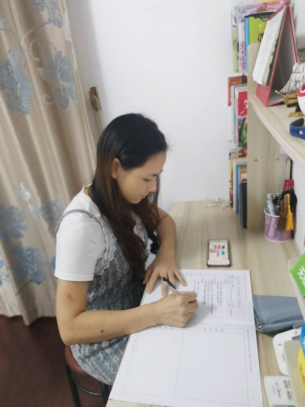 班主任認(rèn)真地做家長(zhǎng)會(huì)前的準(zhǔn)備工作