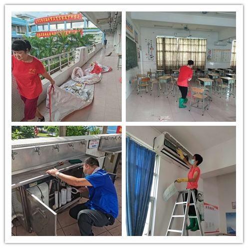 在新高三回校的路途上,有這樣一群默默無(wú)聞,不為人知的后勤團(tuán)隊(duì),他們?cè)谡介_(kāi)學(xué)前抓緊時(shí)間對(duì)高三樓的飲水機(jī),電線(xiàn),以及各個(gè)班級(jí)的空調(diào)等設(shè)備及生活必需品進(jìn)行檢修,只為高三學(xué)子回校后,在學(xué)習(xí)生活上有一個(gè)最穩(wěn)定可靠的保障。