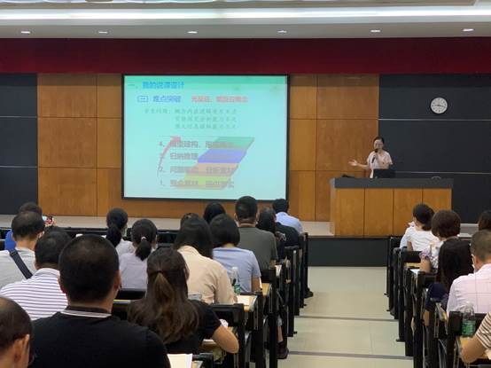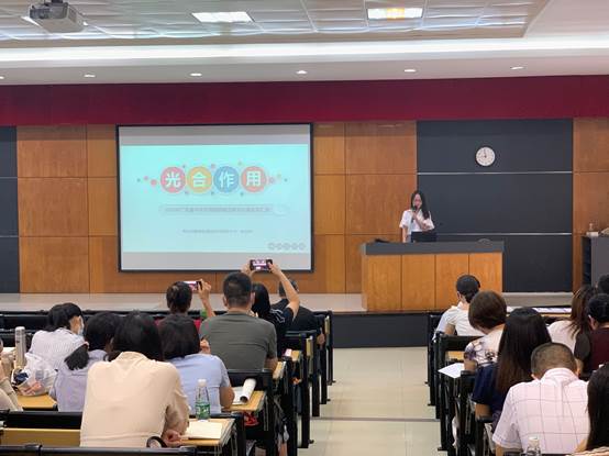 會議分兩個階段進行,第一階段全體會議由區(qū)教研員劉正旺老師主持。由參加8月份廣東省中學生物教師概念教學競賽獲獎的三位代表老師作專題發(fā)言,來自勒流新球中學黃育純老師(初中決賽一等獎獲得者)和鄭裕彤中學馮思瓊老師(高中決賽特等獎獲得者)作了《光合作用》概念教學的分享,來自龍江中學張祺英老師(高中決賽特等獎獲得者)作了關于《生物膜流動鑲嵌模型模型》概念教學的分享。三位老師分別從選題設計、參賽歷程等方面,向同行們分享了他們的參賽感悟和體會,從準備階段的辛苦磨練到比賽中的出彩表現(xiàn)以及通過比賽促進專業(yè)成長的深度思考,都有板有眼、娓娓道來,博得老師們陣陣點贊。在《光合作用》概念教學的分享中,與會老師還領略了初高中《光合作用》內容教學的不同和聯(lián)系。此參賽獲獎優(yōu)秀作品分享,對會議的主題“初高教研銜接”作了很好的詮釋,也使老師們對初高中生物的教學銜接產(chǎn)生了新的認識。