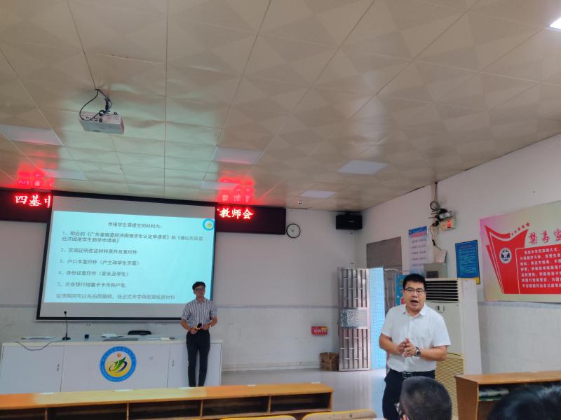 為了更好地開展四基中學(xué)秋季學(xué)生資助工作,使班主任們進(jìn)一步深入了解國(guó)家教育資助政策;同時(shí)向?qū)W生和家長(zhǎng)廣泛宣傳各項(xiàng)資助政策,以便更好地普及家庭經(jīng)濟(jì)困難學(xué)生資助情況。9月8日上午,四基中學(xué)在學(xué)校電教室召開了2020年秋季學(xué)生資助政策班主任培訓(xùn)會(huì)議。會(huì)議由學(xué)校德育處楊溢副主任主持,周家飛副校長(zhǎng)、各年級(jí)級(jí)長(zhǎng)以及全體班主任出席了會(huì)議。