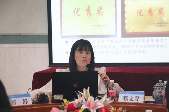 隨后,曾靜副校長結(jié)合近兩年中考成績,從指導思想、中考目標、重點工作措施三方面進行了中考備考經(jīng)驗分享。