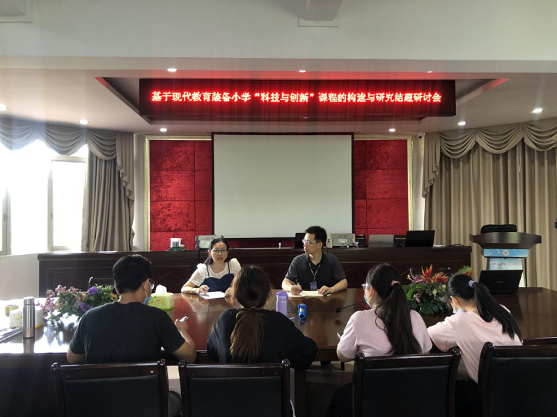 夏日微風習習,2020年6月29日,在謝校長與黃振道主任組織下,我校參與的國家級課題子課題《基于現(xiàn)代教育裝備小學“科技與創(chuàng)新”課程的構建與研究》負責人以及主研人員在三樓會議室召開課研討及結題工作推進會。