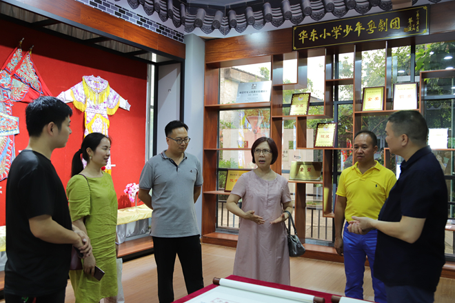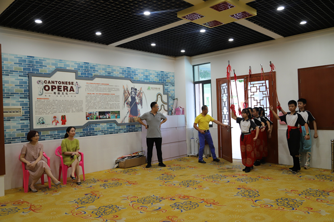隨后,三人參觀了我校的粵劇展覽室,了解華東小學(xué)粵劇項(xiàng)目的不斷發(fā)展、不斷壯大的成長歷程,并對(duì)學(xué)校和孩子們?nèi)〉玫某煽冑澆唤^口。作為華東小學(xué)粵劇少兒藝術(shù)團(tuán)的名譽(yù)團(tuán)長,倪惠英女士和李漢銓先生還為學(xué)校在這個(gè)項(xiàng)目的發(fā)展指明新的方向。