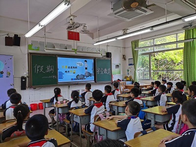 首先通過(guò)雷州市附城中學(xué)學(xué)生的溺水事件,建議同學(xué)們盡可能不要去周圍的水域玩耍,并通過(guò)視頻引導(dǎo)學(xué)習(xí)發(fā)生溺水后如何自救與施救呢?有哪些防溺水安全知識(shí)?隨后講述山東省青島某高校一名大四學(xué)生因輕信網(wǎng)友造成自身財(cái)產(chǎn)損失的事件,提醒各位同學(xué)上網(wǎng)要謹(jǐn)慎,不能輕信陌生人。緊接著通報(bào)一則近期亡人火災(zāi)事故,再次強(qiáng)調(diào)安全用電用火的重要性。最后補(bǔ)充疫情期間不聚集、迷路該如何做等問(wèn)題,提高全體學(xué)生對(duì)安全的重視,學(xué)會(huì)保護(hù)自己。各班同學(xué)在老師的引導(dǎo)下,認(rèn)真專注地學(xué)習(xí)。