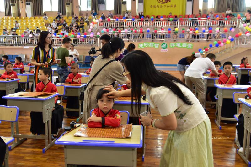 本次“開筆禮”儀式包括:“行禮儀”、“正衣冠”、“朱砂啟智”、“擊鼓鳴志”、“開筆啟蒙”、“感恩鞠躬”六大環(huán)節(jié)。