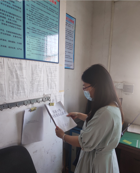 上午9點,檢查組蒞臨蘇溪小學進行核驗和指導。蘇溪小學嚴格按照防疫要求,對進入學校的人員進行登記、測溫。檢查組一行人來到會議室查閱蘇溪小學一直以來的防疫工作檔案、記錄等,重點查閱開學方案、消毒記錄表等事關每一個師生健康安全的內(nèi)容。
