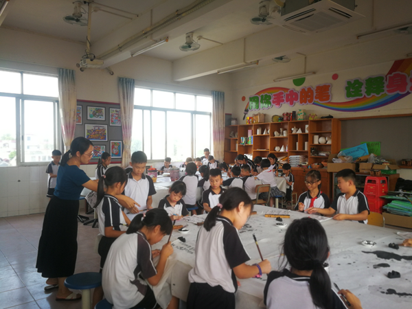 硬筆書(shū)法賽場(chǎng)上,現(xiàn)場(chǎng)氣氛非常融洽。同學(xué)們專注、認(rèn)真、細(xì)致地書(shū)寫(xiě)。一幅幅作品或遒勁有力、或飄逸靈動(dòng)、或形神兼?zhèn)?、或氣韻生?dòng)。軟筆現(xiàn)場(chǎng),小書(shū)法家們揮毫潑墨,在紙張上書(shū)寫(xiě)自己心中的新時(shí)代。繪畫(huà)現(xiàn)場(chǎng),同學(xué)們圍繞“歌頌新時(shí)代”主題,精心構(gòu)思,創(chuàng)作出多幅具有深刻寓意的書(shū)畫(huà)作品。