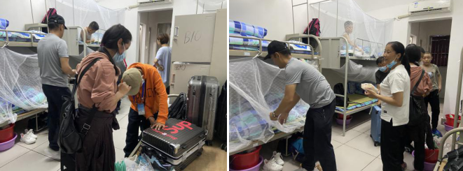 (胡和秋校長(zhǎng)細(xì)心關(guān)注新生的生活)
