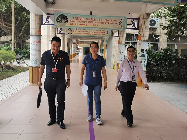 龍江鎮(zhèn)衛(wèi)生健康辦公室公共衛(wèi)生管理股股長(zhǎng)鄺乃全于2020年9月22日下午蒞臨我校開展廣東省2020年健康促進(jìn)示范學(xué)校復(fù)評(píng)工作,衛(wèi)生負(fù)責(zé)人余笑雁和總務(wù)處副主任梁旭升陪同檢查。