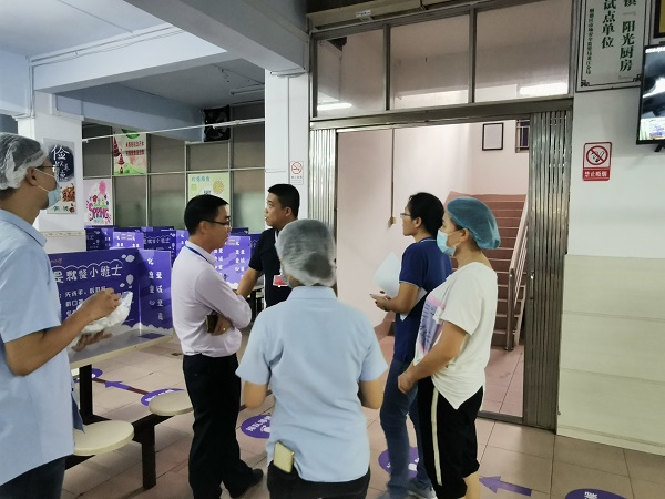 (鄺乃全股長(zhǎng)實(shí)地查看我校食堂)