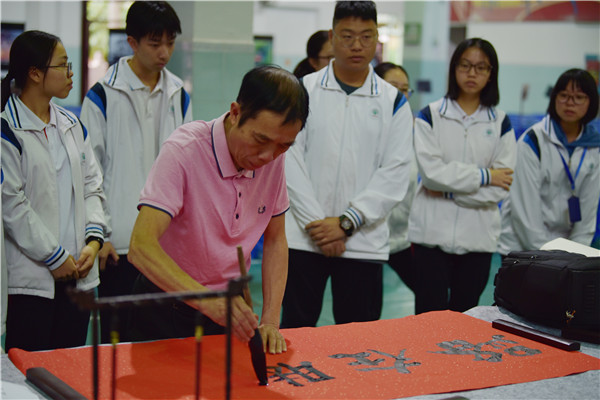 紅棉藝術(shù)節(jié)活動(dòng)的熱潮一浪接一浪,緊接著我校十個(gè)班級(jí)以大合唱的形式禮贊紅棉,歌詠青春,唱響容山精神。我校為發(fā)揚(yáng)書院文化與書香文化,與紅棉藝術(shù)節(jié)同期舉辦的還有引人矚目的讀寫活動(dòng)。同時(shí)我校特邀來到現(xiàn)場(chǎng)的著名藝術(shù)家們也參與到活動(dòng)中去。