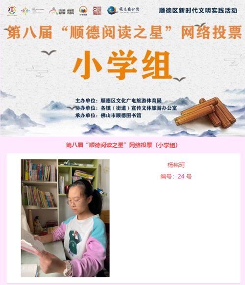 三月,我校楊銘珂同學(xué)入圍第八屆“順德區(qū)閱讀之星”評選。楊銘珂同學(xué)從小就開始培養(yǎng)自己的閱讀習(xí)慣,對書籍充滿興趣。楊同學(xué)認(rèn)為閱讀就是充實(shí)自己的最好方式,也是提升自我實(shí)力、豐富人生的一劑良藥。