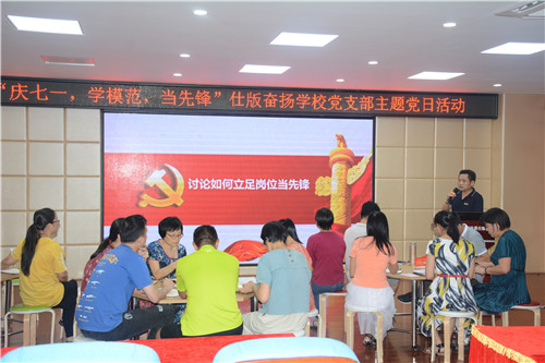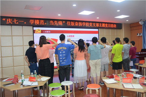 為慶祝中國共產(chǎn)黨成立99周年,引導(dǎo)廣大黨員教師重溫黨史、學(xué)習(xí)時(shí)代楷模精神、表揚(yáng)先進(jìn)、及時(shí)樹立先鋒模范,弘揚(yáng)黨的優(yōu)良傳統(tǒng),傳承紅色基因,踐行共產(chǎn)黨人的初心使命。2020年6月28日下午,仕版奮揚(yáng)學(xué)校黨支部開展”慶七一,學(xué)模范,當(dāng)先鋒“主題黨日活動(dòng)”。