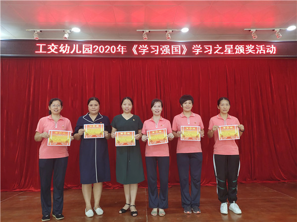 6月30日上午在工交幼兒園黨支部組織委員梁燕芳同志主持下,開展了全園教職工“學(xué)習(xí)強(qiáng)國”平臺(tái)學(xué)習(xí)評(píng)比表彰活動(dòng)。進(jìn)一步激發(fā)教職工主動(dòng)學(xué)、深入學(xué)“學(xué)習(xí)強(qiáng)國”的熱情與動(dòng)力,促使黨員、群眾形成在平臺(tái)上學(xué)習(xí)的日常習(xí)慣和行為自覺,促進(jìn)廣大黨員、群眾共同進(jìn)步。會(huì)上,首先公布了每位教師的學(xué)習(xí)積分及排名情況,并依此評(píng)選出一、二、三等獎(jiǎng)。由柯英麗書記為獲獎(jiǎng)教師頒發(fā)了獎(jiǎng)狀。