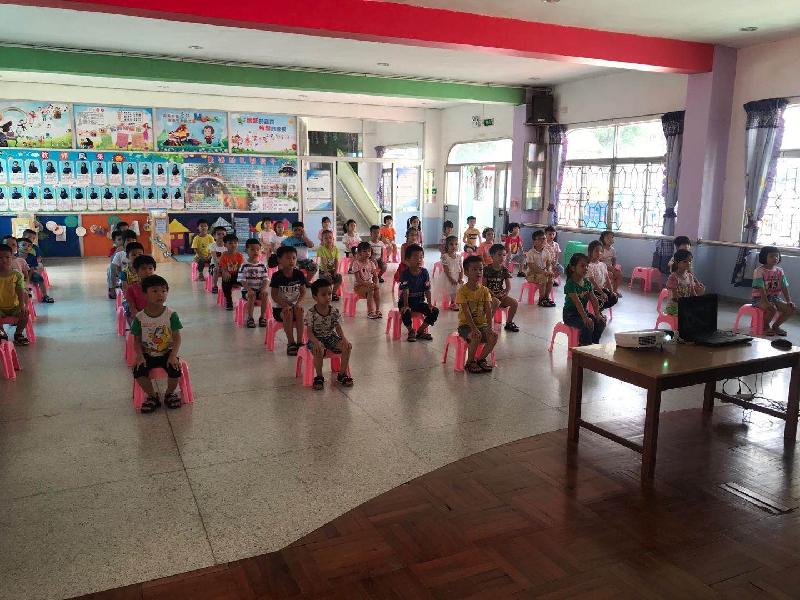 幼兒在觀看熹涌小學(xué)的一日學(xué)習生活流程視頻