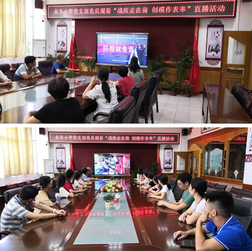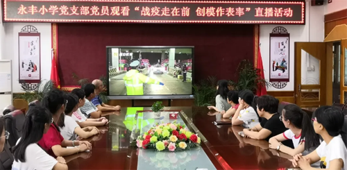 2020年6月28日下午3點整,永豐小學黨支部黨員在吳凡書記的組織下,觀看“戰(zhàn)疫走在前,創(chuàng)模作表率”直播活動。