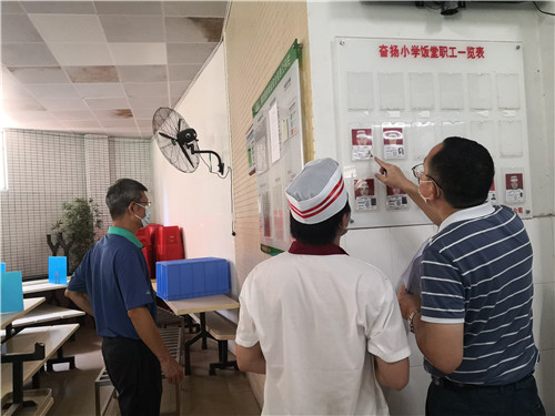 為確保廣大師生飲食安全,進(jìn)一步推進(jìn)校園飯?zhí)檬称钒踩ぷ?span>。2020年7月13日下午,倫教街道教育局常務(wù)副局長(zhǎng)張兆強(qiáng)先生、倫教街道教育局督導(dǎo)專干胡杰先生蒞臨仕版奮揚(yáng)學(xué)校,進(jìn)行飯?zhí)檬称钒踩珯z查。