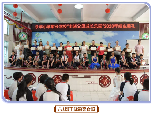 一張張稚嫩的笑臉,見(jiàn)證著孩子們的成長(zhǎng)與歡樂(lè)。六年級(jí)的家長(zhǎng)們?cè)谪S曉父母成長(zhǎng)樂(lè)園已經(jīng)學(xué)習(xí)了六年級(jí)了。孩子們畢業(yè)了,家長(zhǎng)們也結(jié)束了在豐曉父母成長(zhǎng)樂(lè)園里的學(xué)習(xí),孩子們把家長(zhǎng)帶上舞臺(tái),為爸爸媽媽們頒發(fā)他們的結(jié)業(yè)證書!