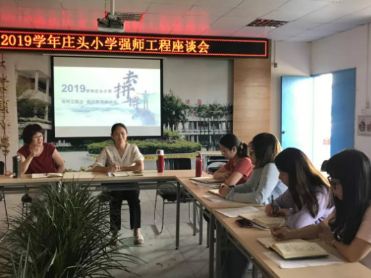 2020年7月16日下午,莊頭小學首次"強師工程"教師座談會在學校三樓會議室召開,會議由教導處主任何善雅主持,朱麗苑校長參會。