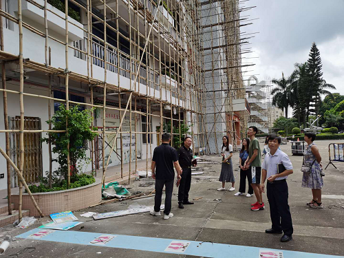 何小祥校長及行政帶領(lǐng)安全組成員巡查校園工程隱患