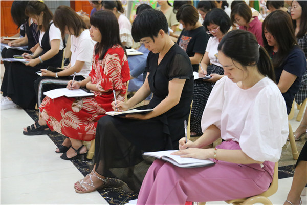 首先,柯園長(zhǎng)從多個(gè)方面對(duì)教師進(jìn)行了師德方面的培訓(xùn),首先通過(guò)真實(shí)的一個(gè)個(gè)案例讓教師銘記要時(shí)刻警惕自己的一言一行。師德值得反思的問(wèn)題、關(guān)愛(ài)學(xué)生、尊重家長(zhǎng)及為人師表方面,還剖析了新兵-精兵-將的成長(zhǎng)過(guò)程,進(jìn)行了細(xì)致的學(xué)習(xí)。