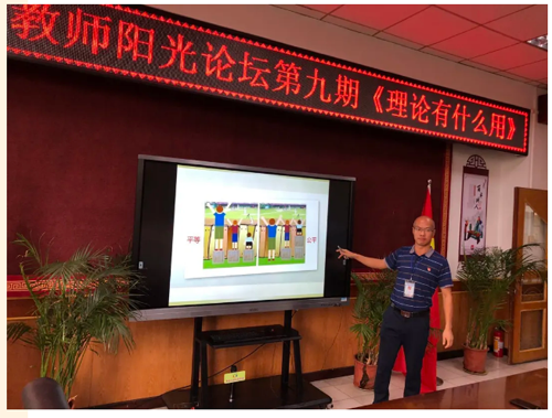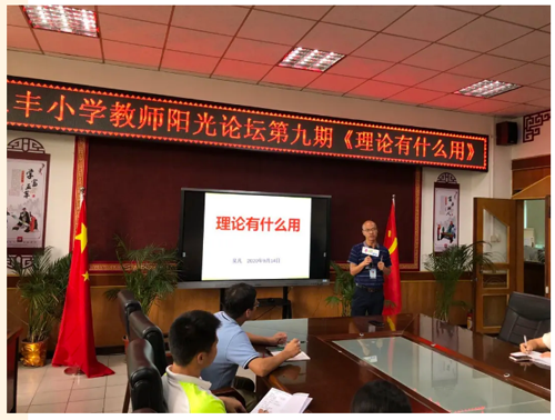 聽課、評課是一種最直接、最具體、最有效的研究提高課堂教學質(zhì)量的方法和手段,是教師互相學習、研究教學的重要措施。為了進一步提升教師聽課和評課的能力,促進教師的專業(yè)化發(fā)展,9月14日下午,永豐小學舉行了題為《理論有什么用》的校本培訓活動。