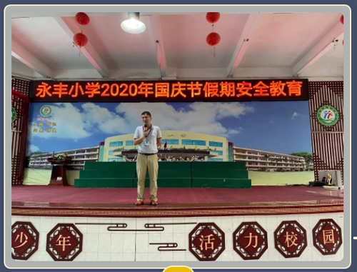 中秋、國慶兩節(jié)即將到來,為了使全體師生過一個(gè)愉快而又安全的 “ 十一 ” 長假,嚴(yán)防安全事故發(fā)生,確保生命及財(cái)產(chǎn)安全。9月28日上午,永豐小學(xué)堅(jiān)持預(yù)防為主的原則,開展了中秋及國慶節(jié)前安全教育。