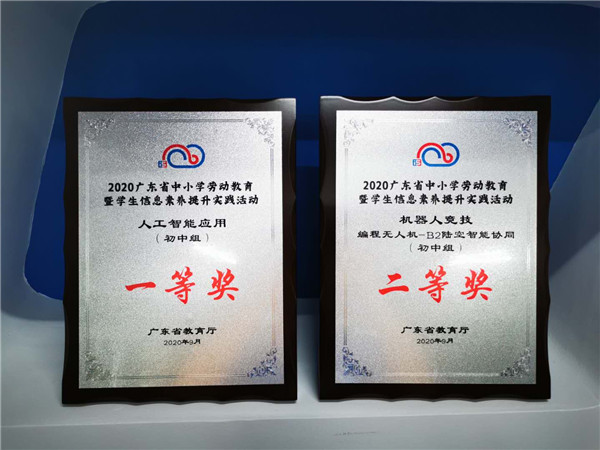 原來,9月23日至26日在佛山市千燈湖酒店舉辦的廣東省中小學(xué)勞動教育暨學(xué)生信息素養(yǎng)提升實(shí)踐活動比賽中,陳惠南紀(jì)念中學(xué)共派出兩支隊(duì)伍代表順德區(qū)參加此次省賽,這兩支隊(duì)伍是謝詩雯老師帶領(lǐng)的人工智能隊(duì)伍和歐旭明老師帶領(lǐng)的編程無人機(jī)隊(duì)伍,分別獲得省一、二等獎!