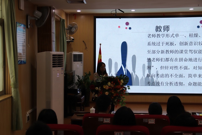 儀式的第三個(gè)議程,由工作室成員代表林子楚老師作表態(tài)發(fā)言。發(fā)言中,她首先感謝學(xué)校領(lǐng)導(dǎo)、科組老師們的支持、幫助與關(guān)愛,讓年輕教師能勇往直前、無懼風(fēng)浪;其次,她希望年輕教師能珍惜和把握寶貴機(jī)遇,對自己嚴(yán)要求、多研學(xué)、實(shí)操練,向名師靠近、取經(jīng);最后,她有信心各工作室成員能在名師的指導(dǎo)下努力發(fā)展自己,形成合力,為倫小的教育教學(xué)水平提升新臺階而貢獻(xiàn)自己的光和熱。