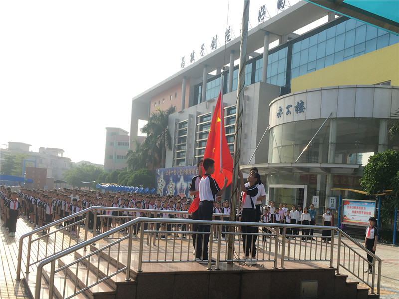 由于場(chǎng)地范圍有限,但是同學(xué)們參加典禮的熱情無(wú)限。只見(jiàn)同學(xué)們一個(gè)個(gè)揚(yáng)著笑臉,有序地到指定地點(diǎn)站好,靜待典禮開(kāi)始,整個(gè)會(huì)場(chǎng)寂靜安然,秩序良好。典禮由麥國(guó)才主任主持,首先是升旗儀式,五星紅旗冉冉升起,整齊的隊(duì)禮,莊嚴(yán)的儀式,傳達(dá)出全體師生對(duì)祖國(guó)的尊重與熱愛(ài)!典禮在莊嚴(yán)的國(guó)歌聲中拉開(kāi)了序幕。