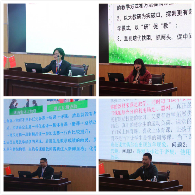 隨后,各科組長(zhǎng)逐一上臺(tái)匯報(bào),針對(duì)本學(xué)期科組的教研工作進(jìn)行了全面的梳理。同時(shí)圍繞一學(xué)期來(lái)科組開(kāi)展的教學(xué)常規(guī)、教學(xué)研究、科組活動(dòng)、競(jìng)賽輔導(dǎo)等各項(xiàng)工作存在的不足以及解決措施進(jìn)行了深入淺出的總結(jié)說(shuō)明。各科組的總結(jié)說(shuō)明,理清了工作思路,明確了今后工作的重點(diǎn),為學(xué)校下學(xué)期教育教學(xué)及科組工作的開(kāi)展、教學(xué)質(zhì)量的提升奠定了堅(jiān)實(shí)的基礎(chǔ)。