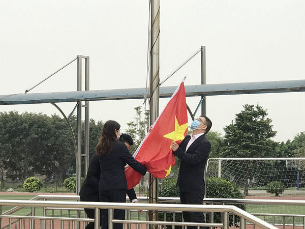 本次升旗儀式由張永新校長(zhǎng)、盧志華副校長(zhǎng)、麥國(guó)才副主任當(dāng)升旗手,廖敏意主任、黃慧萍主任、吳兆任副主任當(dāng)護(hù)旗手。瞧,他們正邁著矯健的步伐,昂首闊步地將五星紅旗護(hù)送至升旗臺(tái)。