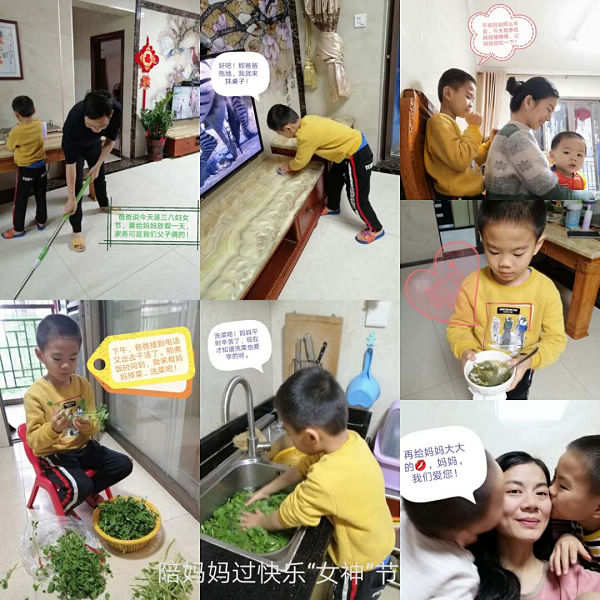 時(shí)光可以暗淡容顏,但帶不走美麗;勞作可以粗糙雙手,但帶不走關(guān)愛。陽春三月,萬物復(fù)蘇,在這個(gè)春暖花開的季節(jié),一年一度的“三八”國際婦女節(jié)來臨了,為了讓少先隊(duì)員學(xué)會(huì)付出、學(xué)會(huì)回報(bào),懂得孝敬、懂得體諒長(zhǎng)輩的良苦用心,羅沙小學(xué)大隊(duì)部現(xiàn)向全校少先隊(duì)員發(fā)出倡議,號(hào)召全體少先隊(duì)員在這個(gè)特殊的節(jié)日里,用自己的行動(dòng)去做一些力所能及的小事情,為媽媽、奶奶、外婆、老師等女性長(zhǎng)輩們獻(xiàn)上他們最真誠的祝福!下面我們一起來看看他們“三八”當(dāng)天,他們都是如何把愛獻(xiàn)給最美女神的吧!