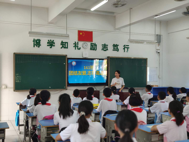 班會(huì)結(jié)束后,我們還進(jìn)行了一個(gè)非常有意義的活動(dòng),就是“傳經(jīng)送寶”――初二師哥師姐帶我們參觀校園,師哥師姐個(gè)個(gè)能言會(huì)道,向我們生動(dòng)地介紹了校園的“名勝”打卡:校訓(xùn)廣場(chǎng)、禁毒長廊、心理咨詢室和運(yùn)動(dòng)場(chǎng)等。