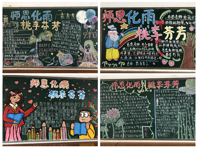 周一下午,全校開展了“師恩化雨,桃李芬芳”教師節(jié)主題班會,同學(xué)們也用心繪制了精美的主題黑板報,感恩老師,伴我成長!在本節(jié)班會課上各班學(xué)生都用了不同的方式來表達對老師的感恩之情。這是在教師節(jié)來臨之際,江義中學(xué)學(xué)子給矛老師們的最好的禮物。老師們都大受感動。通過此次班會增強了師生間的情感,拉近了師生之間的心理距離。