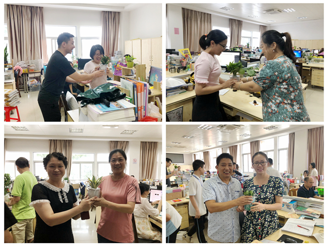 在這個特殊的日子里,江義中學(xué)工會和團總支為全體教師精心準備了一份教師節(jié)小心意――精致的綠植盆栽,由胡和秋校長、劉啟文副書記、周霞副校長、梁凱奇副校長、段永輝副校長以及學(xué)生代表給辦公室每位老師獻上綠植,感謝老師們的辛勤付出!