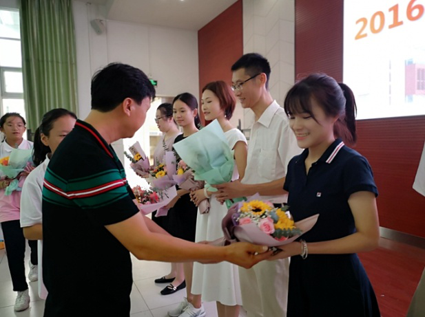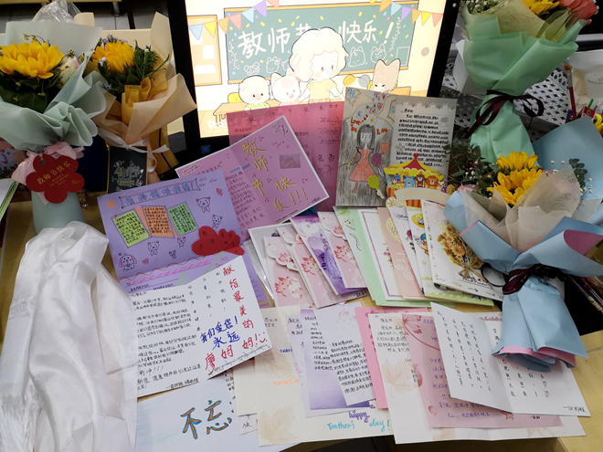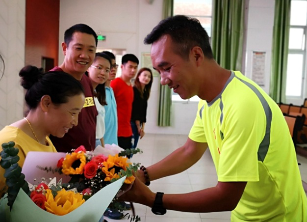 (給老師送上鮮花)