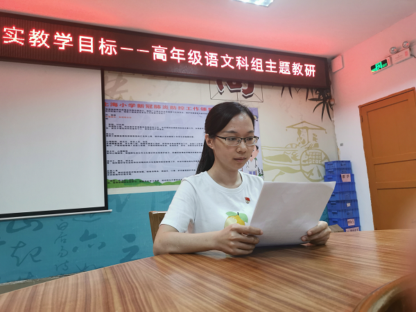 本次研討會(huì),黃娟科長結(jié)合科組兩位青年教師魏佳璇老師和何尚蓉老師參加倫教街道青年教師教學(xué)能力大賽榮獲特等獎(jiǎng)和一等獎(jiǎng)的好成績(jī),拋磚引玉,總結(jié)本次賽事,引導(dǎo)大家思考說課和教學(xué)之道,她指出新教材落腳點(diǎn)為人文主題和語文要素,說課要從教材、教法學(xué)法、教學(xué)過程、教學(xué)效果四方面呈現(xiàn)。