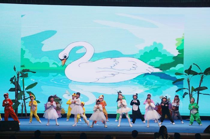 小學(xué)部英語(yǔ)特色班的同學(xué)們帶來(lái)英語(yǔ)童話劇表演《丑小鴨》。小演員們自信大方,造型可愛(ài),把故事演繹的幽默風(fēng)趣。惟妙惟肖的表演讓臺(tái)下笑聲、掌聲此起彼伏。