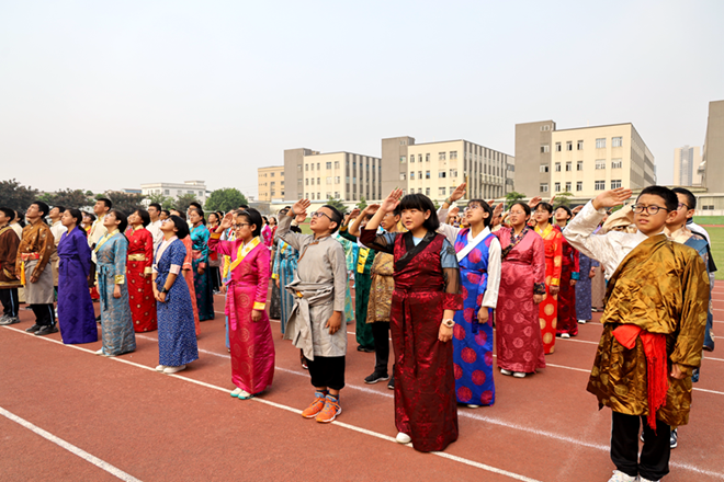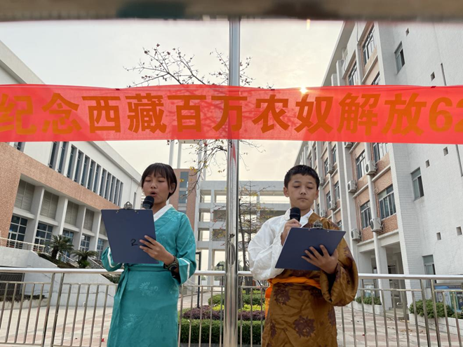 3月28日,江義中學(xué)內(nèi)地班全體同學(xué)身著傳統(tǒng)藏式服裝,齊聚國旗下,熱烈慶?!?.28”西藏百萬農(nóng)奴解放62周年,全體內(nèi)地班師生參加此次升旗儀式。