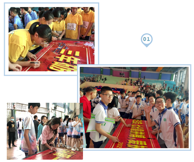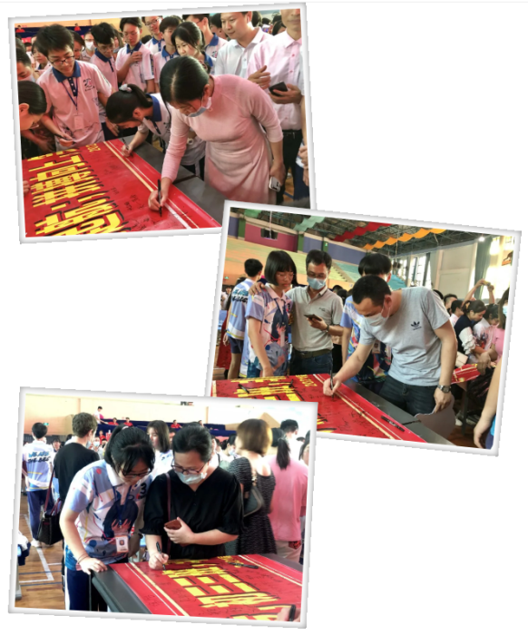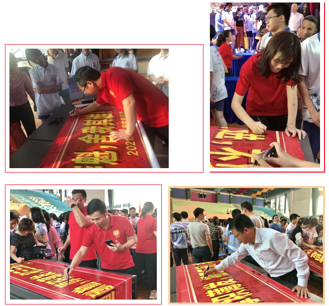 歌聲依然飄揚(yáng),學(xué)校領(lǐng)導(dǎo)、九年級(jí)全體師生、到場(chǎng)的家長(zhǎng)朋友在班級(jí)的誓詞條幅上,鄭重地簽上了自己的名字,以此表達(dá)他們共同決勝中考的信心和決心。隨后各班合影留念,共同記錄下這激動(dòng)的一刻。