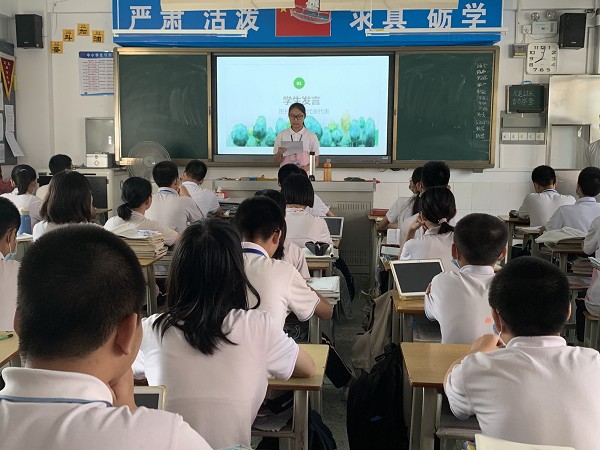 6月29日上午,和煦的陽光灑滿校園,四基中學(xué)博毅七班的教室里同學(xué)們神采奕奕,他們都在共同期待著為班級心愿之樹――紫薇樹舉行掛牌儀式。