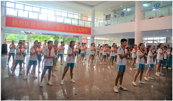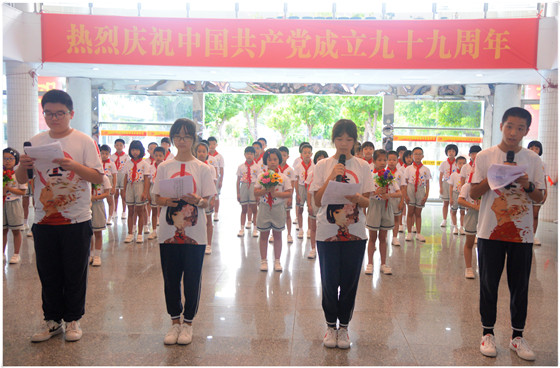 7月1日,值此中國共產(chǎn)黨成立99周年之際,順德一中教育集團(tuán)容桂實(shí)驗(yàn)學(xué)校舉行“慶祝建黨99周年”活動。活動由葉明勝老師主持,中小學(xué)部四至七年級師生以歌舞和誦讀的形式獻(xiàn)禮祖國,謳歌時代新生活。