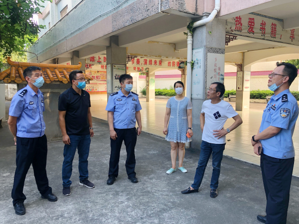 為切實做好常態(tài)化疫情防控下校園安全工作,防止安全事故的發(fā)生,進一步夯實校園安全工作基礎,凈化校園及周邊的治安秩序,維護校園安全。7月7日下午,容桂總商會副會長(秘書長)、小黃圃小學管委會主任黃淼,容桂街道黨工委委員、容桂派出所所長汪剛,容桂派出所辦公室主任吳沛明,容桂派出所城東中隊長伍和雄一行到小黃圃小學視察校園安全工作。學校許社初校長、黃繼紅副校長等行政陪同。